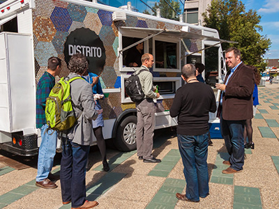 Registration started at 7:45am on Monday, October 14, and all attendees checked in by 8:30am. The folks at the registration table were shocked but were reminded that this was a conference for project managers. Of course, everyone was on time! Greg Hoy welcomed the packed room to our first event and made sure that everyone was settled in for two great days of learning and networking. Our first speaker was Jeffrey Zeldman, who kicked off the event with an inspiring talk titled “The Ten Commandments of Web Design.” Later that morning, Jared Poncot presented “Designing on Purpose: Process & Deliverables in the Responsive Age.” The first two topics set the table for industry learnings ahead and served as a primer for the audience, who were hungry for PM-specific content. The final morning speaker was Brett Harned, who presented 25 tips under the title “Be a Better PM.” At that point the group was hungry for lunch, and more PM-specific knowledge sharing.